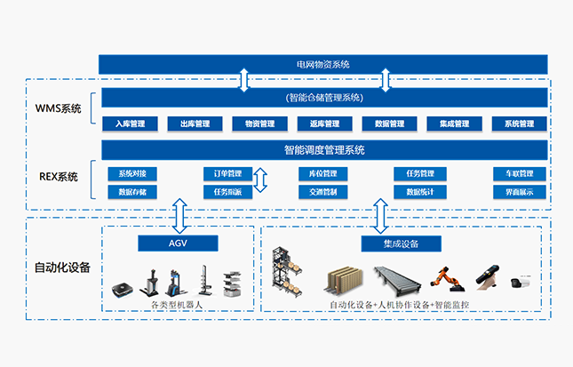 电网物流智能仓储解决方案以”货箱到人、货到人、订单到人“三大核心理念,融合了移动机器人(AGV)、穿梭车、输送机、提升机、移载机、拆碟盘机、自动拆码垛机器人、配套应用视频监控、RFID、 PDA 、电子拣货标签P2L等硬件设备,彻底颠覆传统的物流出入库模式,高效完成包括物料采购入库、领料出库、物料盘点等各项仓库存储业务需求